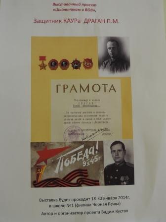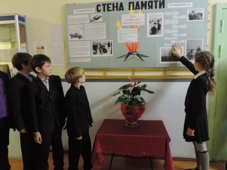 К проведению мероприятий, посвященных 70 –летию полного снятия Блокады, ребята школы (мкр. Черная Речка) готовились по определенному плану. У каждого класса было свое задание, школьники приняли участие в создании и оформлении стены Памяти, встречались с блокадниками – жителями мкр. Черная Речка и записали их рассказы, создали видеофильм, в котором учащиеся школы отвечали на вопрос, что они знают о Блокаде. В.Кустов, житель микрорайона, организовал выставку, посвященную участнику ВОВ Драгану П.М., нашему земляку. Итогом работы стал общешкольный классный час о блокадных днях, на котором ребята представили свои проекты «Дети блокадного Ленинграда», «Дорога жизни», «Подвиг Ленинградцев». 27 января в актовом зале даже самые бойкие притихли – приводимые факты и демонстрируемые видеоматериалы заставляли сжиматься сердце. Мы помним твой подвиг, Ленинград!