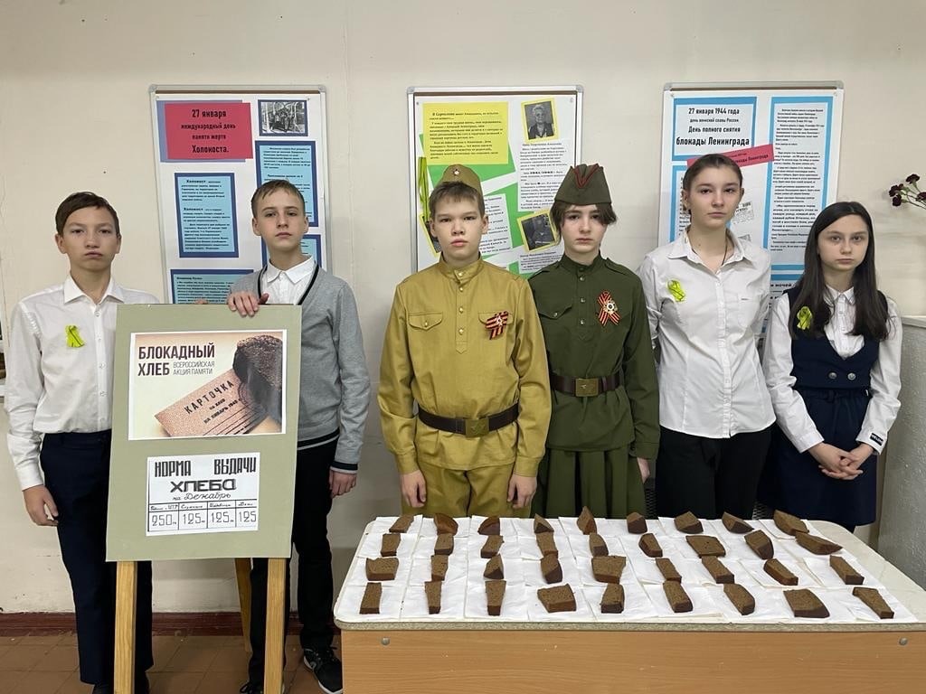 27 января, в День полного освобождения Ленинграда от фашистской блокады, в школе состоялась акция «Блокадный хлеб». Участники исторического клуба «Патриот» при поддержке школьной библиотеки организовали раздачу 125-граммовых кусочков хлеба педагогам и учащимся школы.