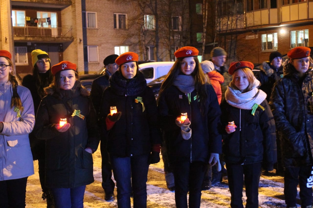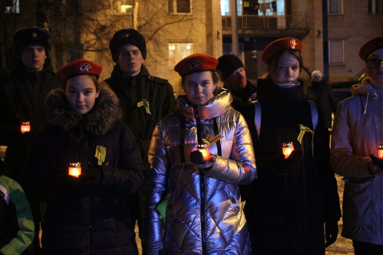 27 января, 2020 года в 18:00 старшеклассники и Отряд Юнармейцев приняли участие в акции «Свеча памяти». Это международная акция, участники которой с 2009 года ежегодно зажигают свечи в память о погибших в Великой Отечественной Войне и в годы Блокады Ленинграда.