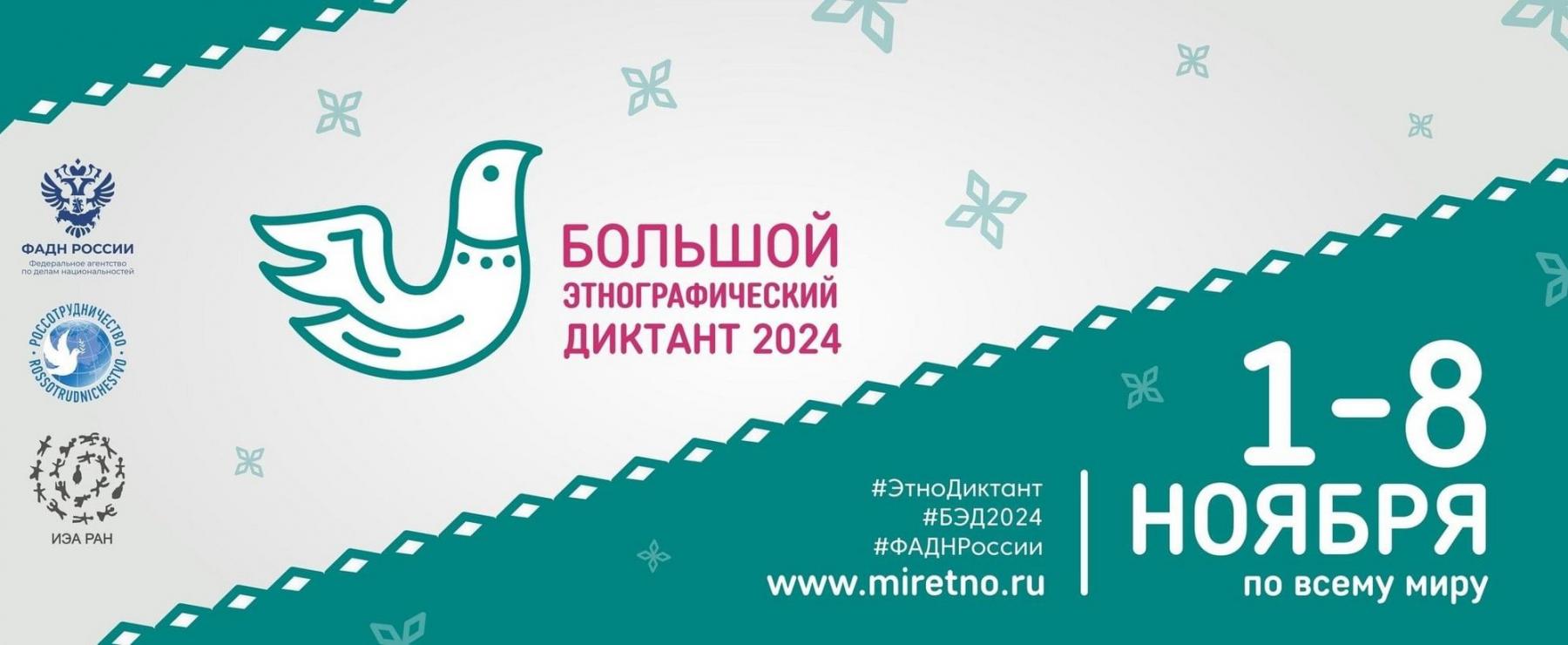 Большой этнографический диктант — это просветительский проект, который знакомит с культурой народов, проживающих в России, а также позволяет оценить общий уровень этнокультурной грамотности. Организатор акции - Федеральное агентство по делам национальностей.