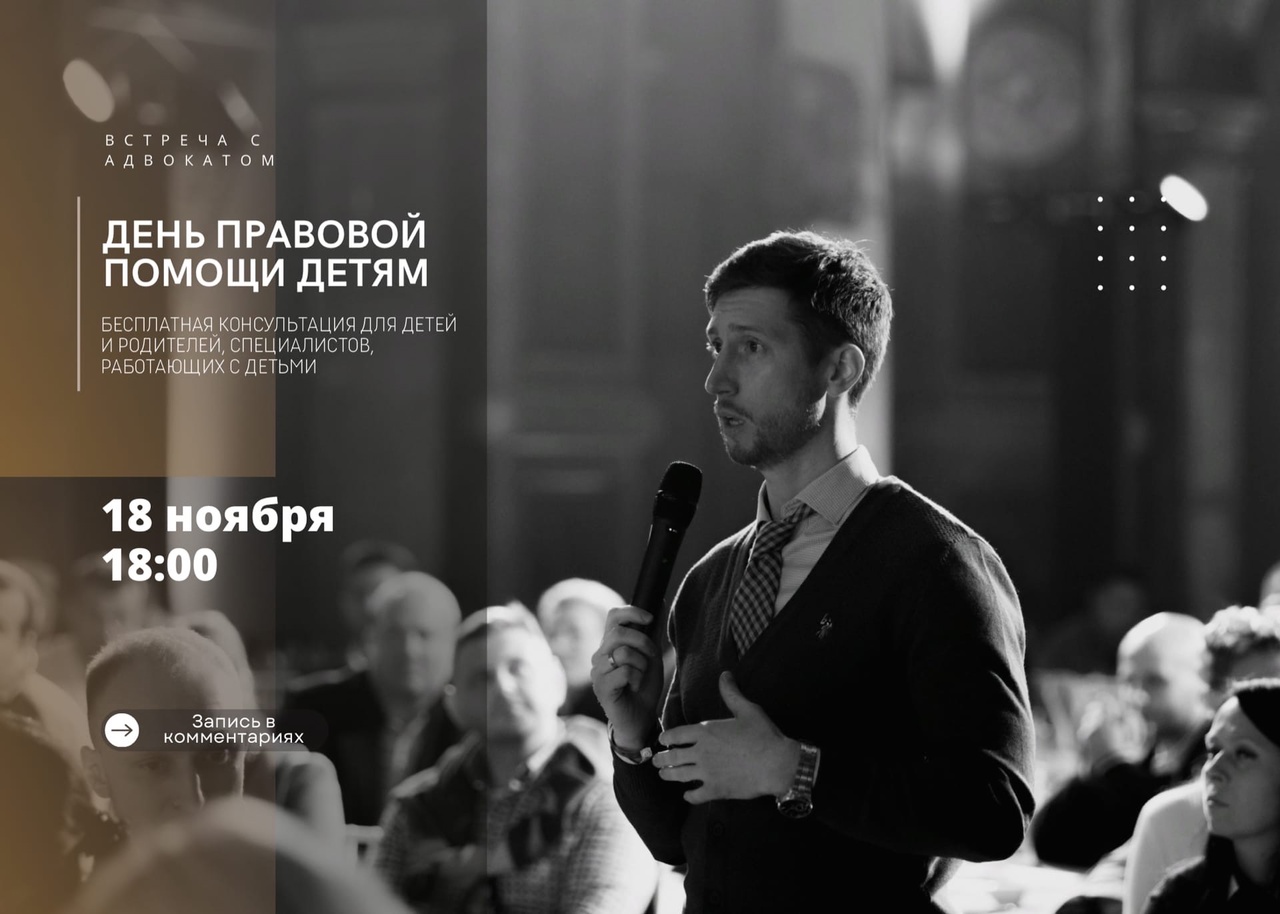 18 ноября, в 18:00 при поддержке Министерства Юстиции Российской Федерации, Адвокатской Палаты Ленинградской области в нашем клубе запланирована встреча с юристом Романом Дадашевым, в рамках проведения Всероссийского дня правовой помощи, на которой мы рассмотрим: права и ответственность детей в школах и на улице, права и ответственность родителей и преподавателей. Обсудим выплаты и компенсации семьям с детьми оставшимися без одного из родителей, многодетным семьям. Обсудим права, обязанности и льготы детей сирот.