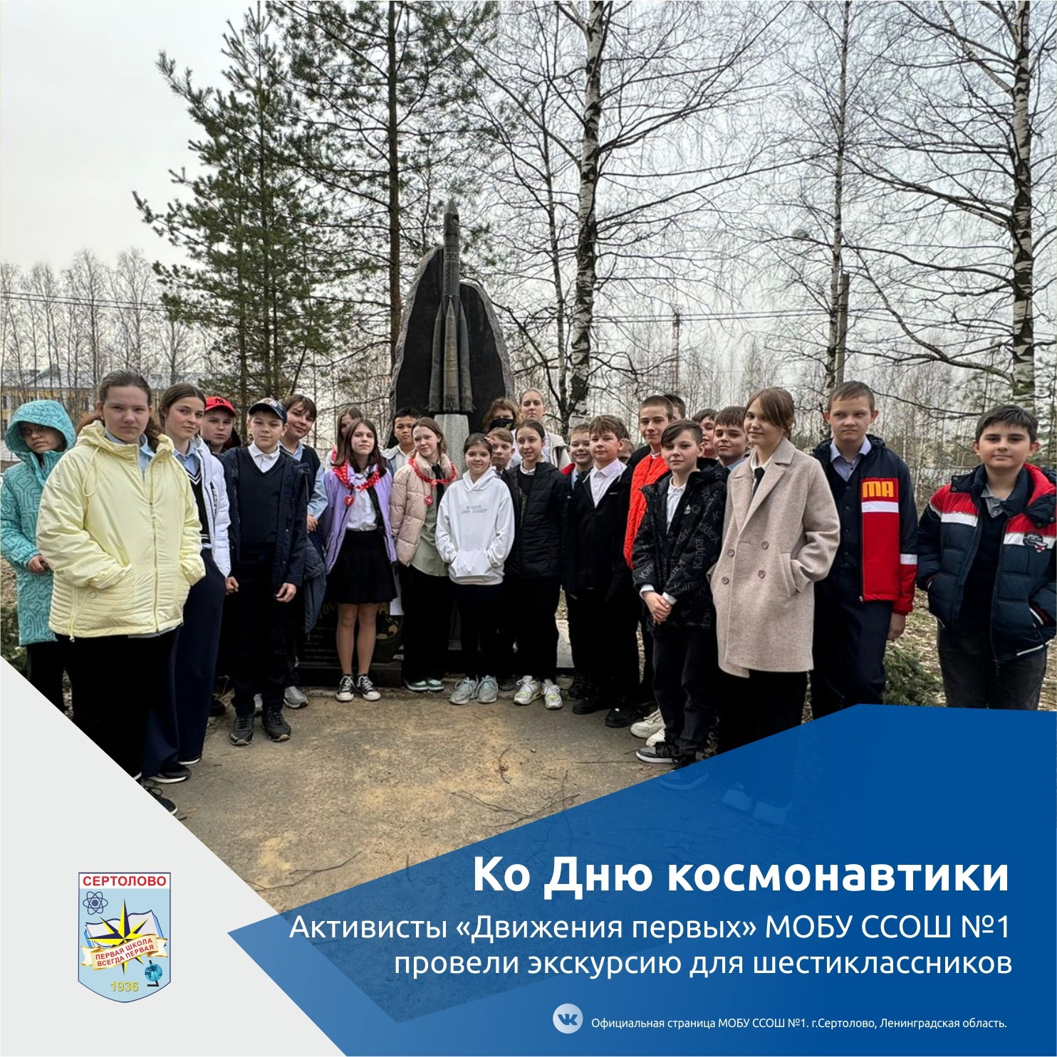 Активисты «Движения первых» 7-В класса Сертоловской СОШ №1 провели экскурсию для шестиклассников, посвященную Дню космонавтики.