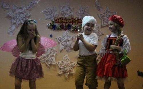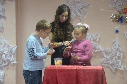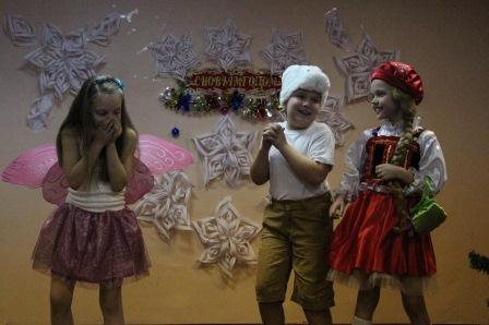 И вот настал день 26 декабря. Актовый зал полон, выступающие в волнении. Праздничный концерт вел Дед Мороз (ученик 8ч класса Веселов Даниил) и ученицы 9ч класса Конова Екатерина и Рахманова Сонярита.