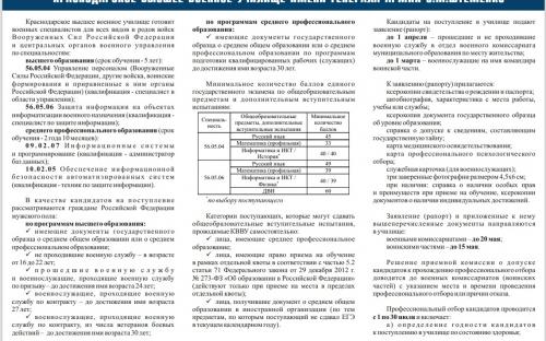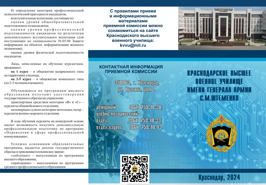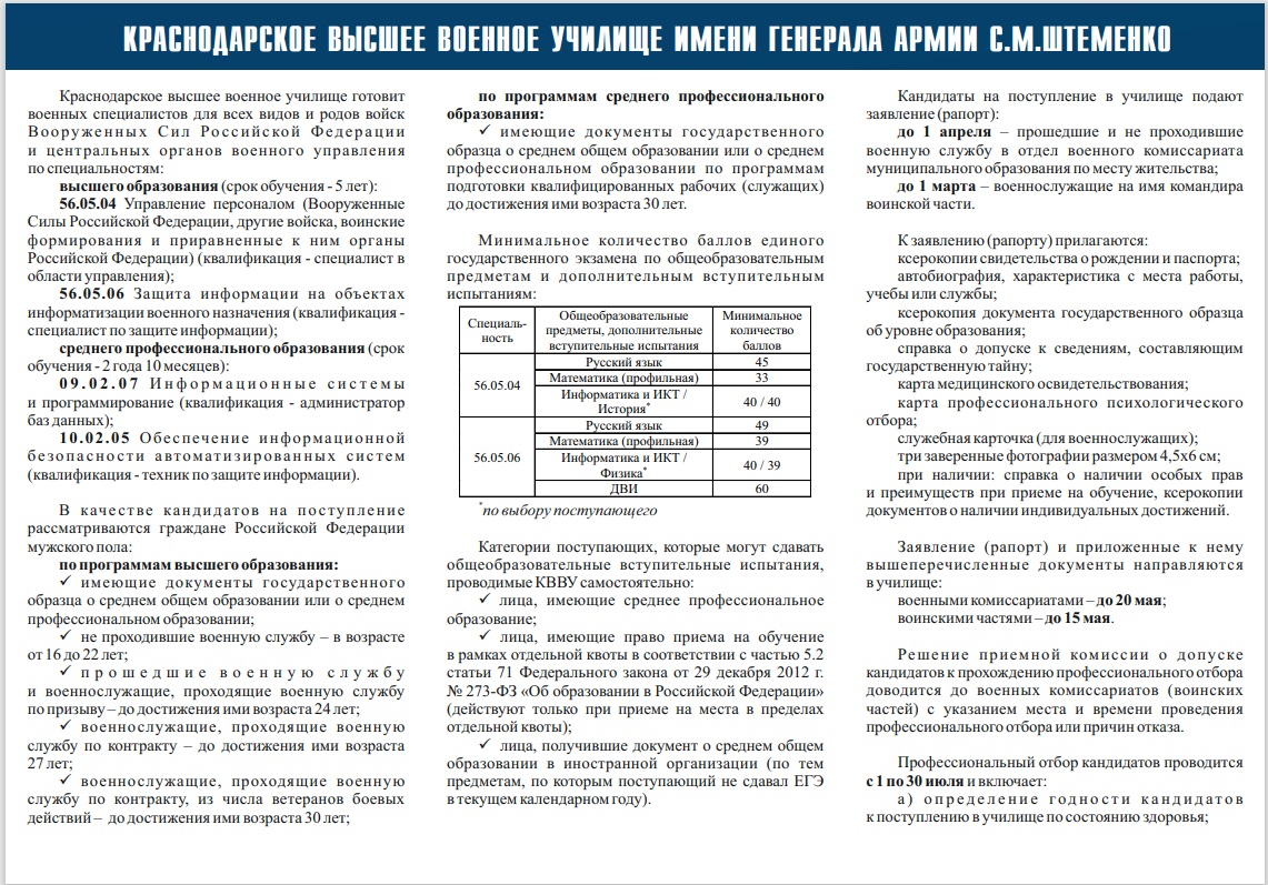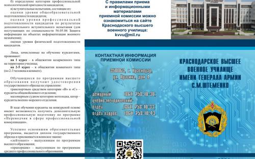 С правилами приема и информационными материалами приемной комиссии можно ознакомиться на сайте Краснодаского высшего военного училища: kvvu@mil.ru