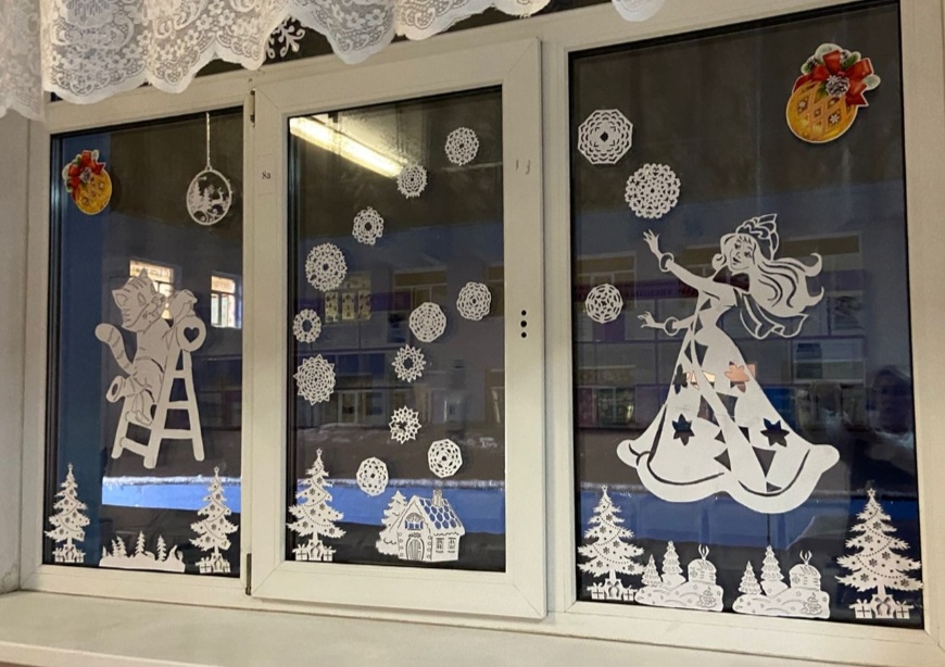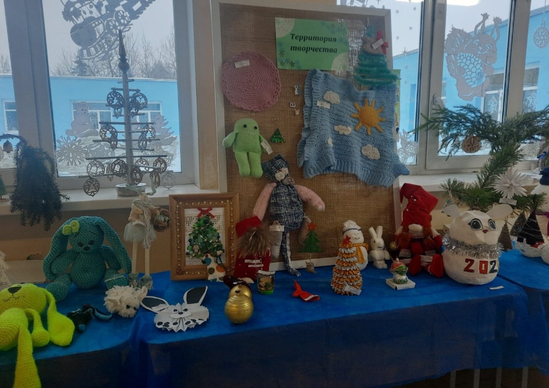 В коридоре оформлена выставка «Мастерская Деда Мороза», где можно увидеть новогодние композиции, символ года, новогодние игрушки.