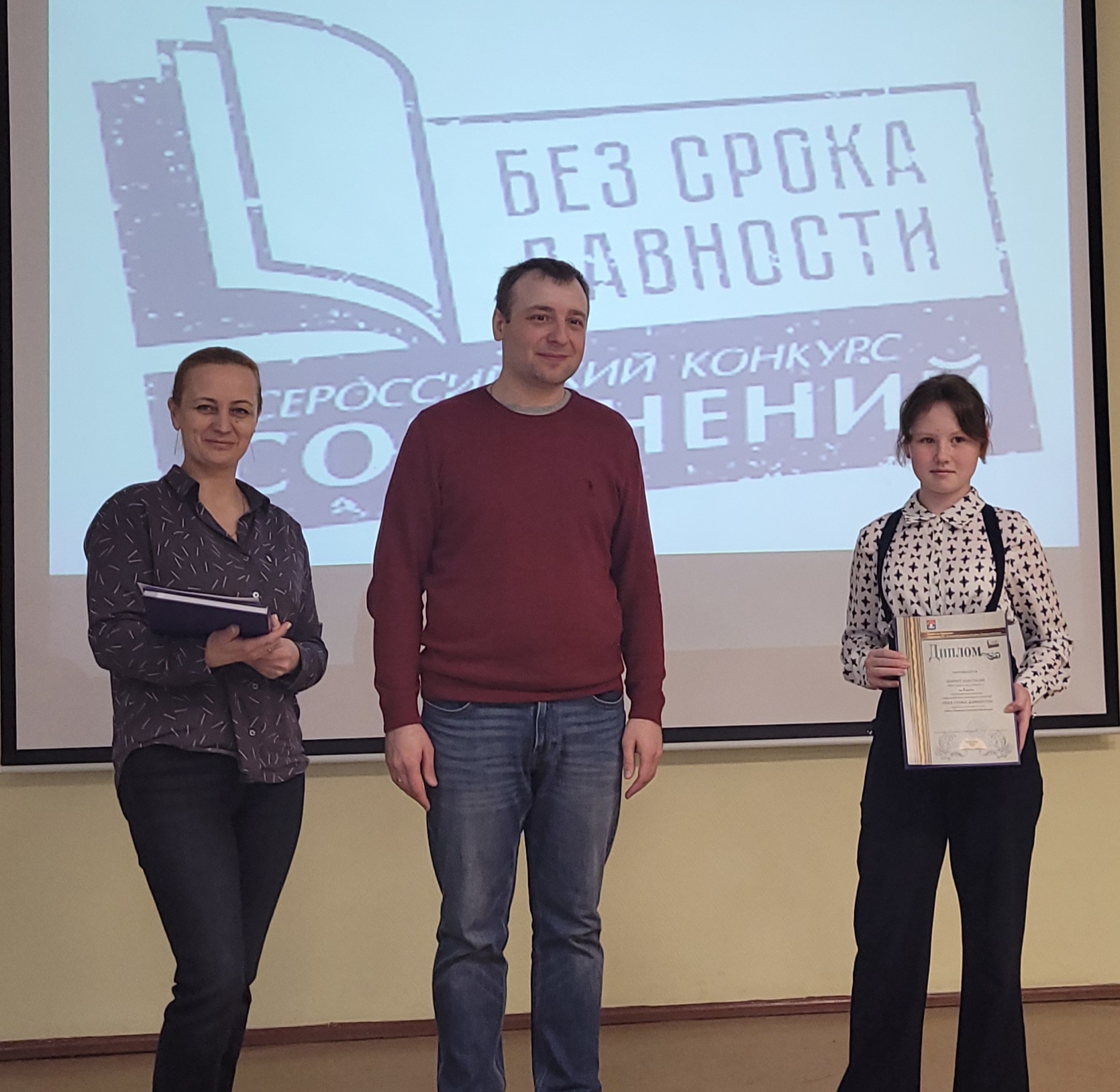 Ученица 6-а класса – Корнет Анастасия получила заслуженную грамоту за 1 место во Всероссийском конкурсе сочинений «Без срока давности» (муниципальный этап), руководитель Новикова Елизавета Михайловна.