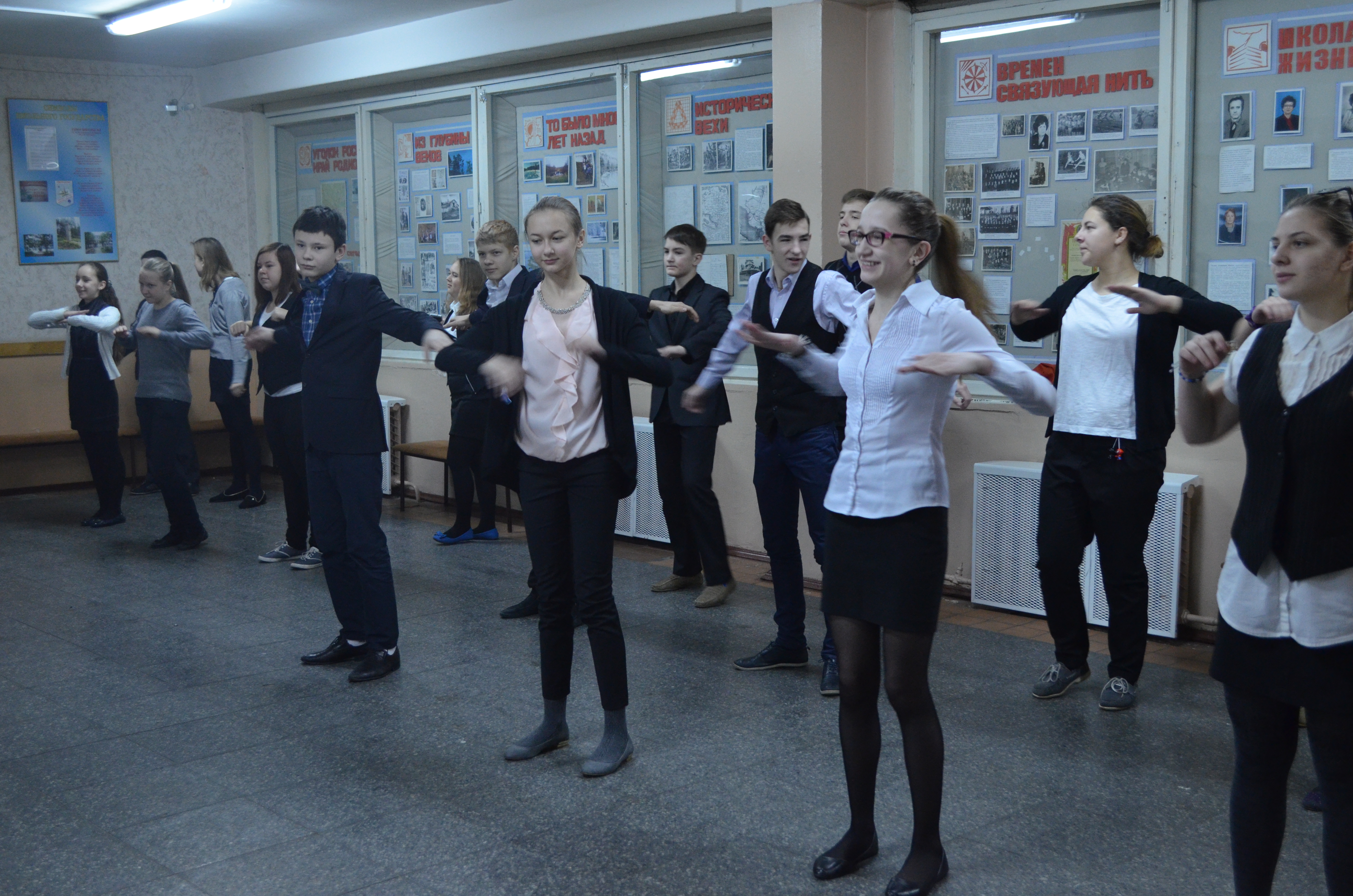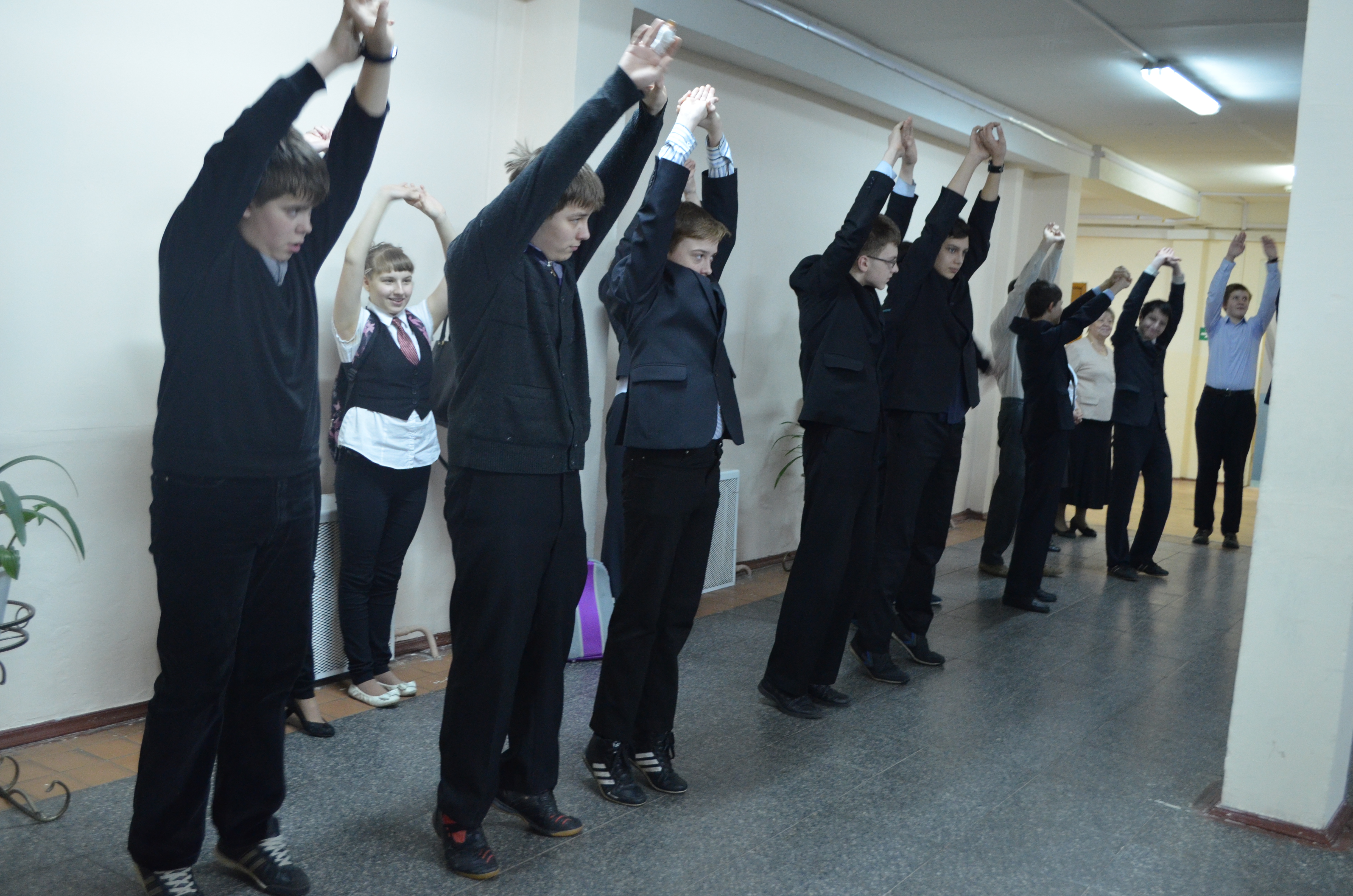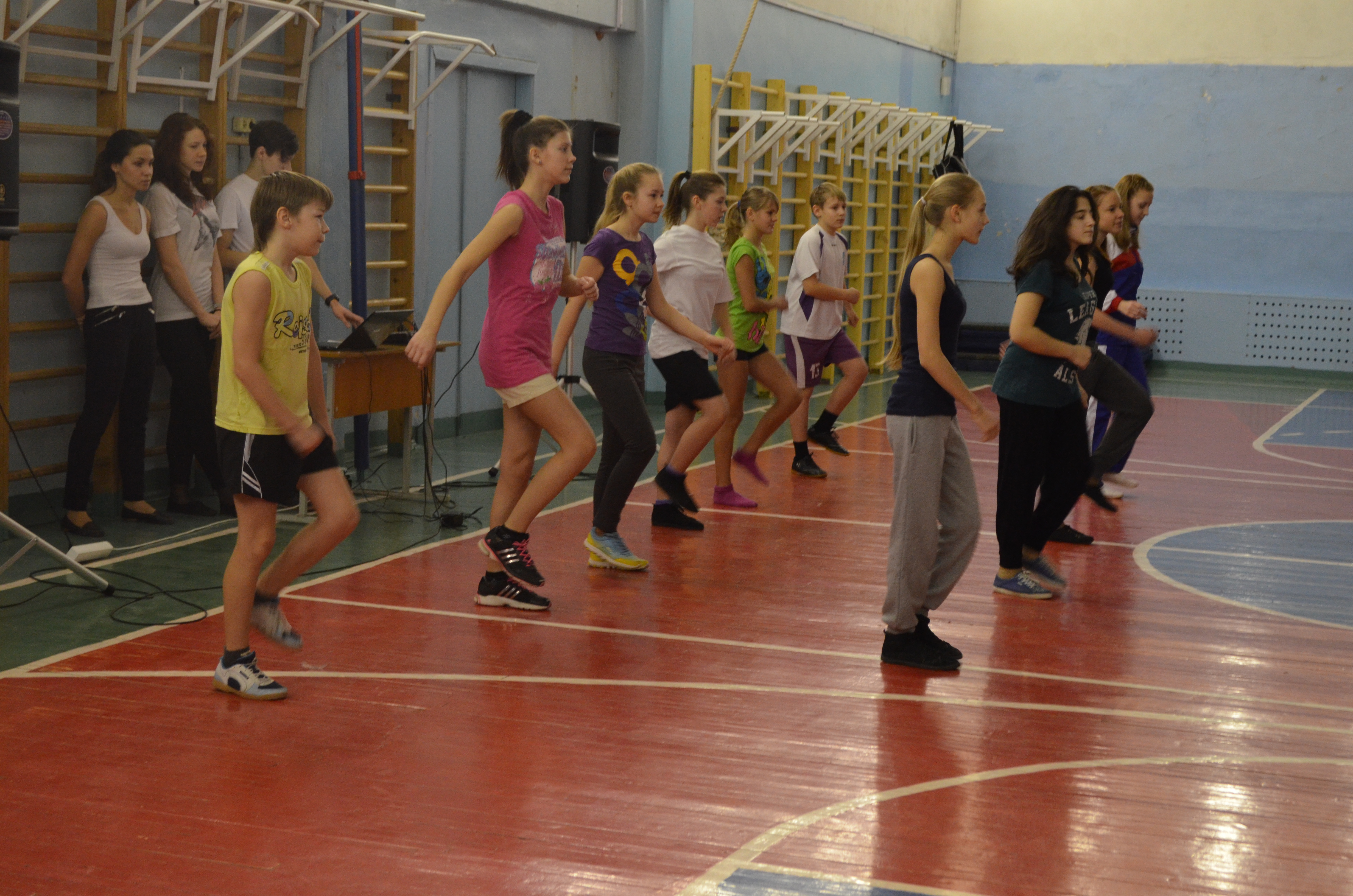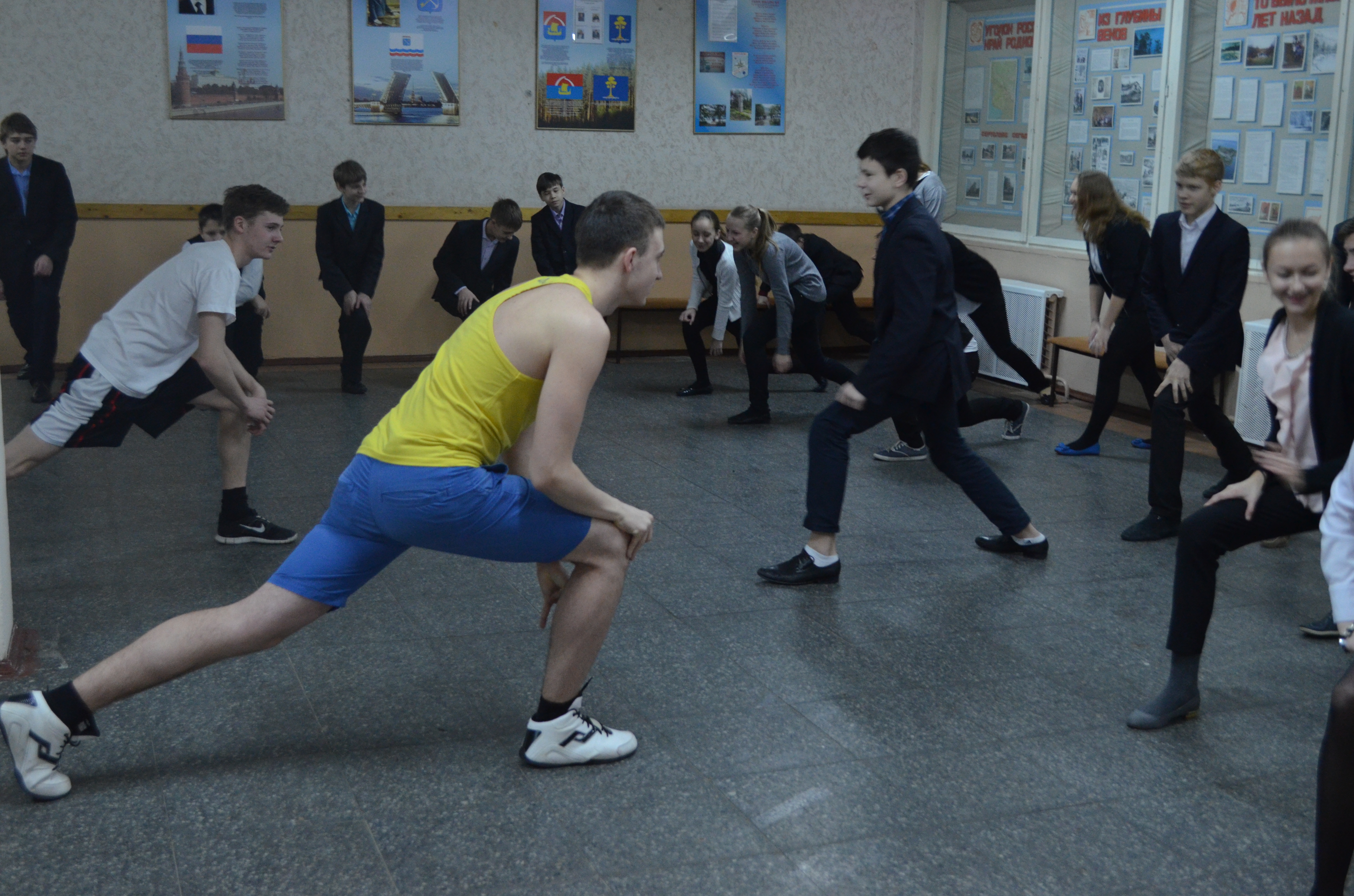 Проведение Единой зарядки в МОБУ "Сертоловская СОШ №1" в поддержку старта олимпийских игр, проходящих в нашей стране.