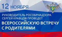 Всероссийская встреча с родителями руководителя Федеральной службы по надзору в сфере образования и науки Сергея Кравцова пройдет 12 ноября 2019 года в Ситуационно-информационном центре Рособрнадзора.