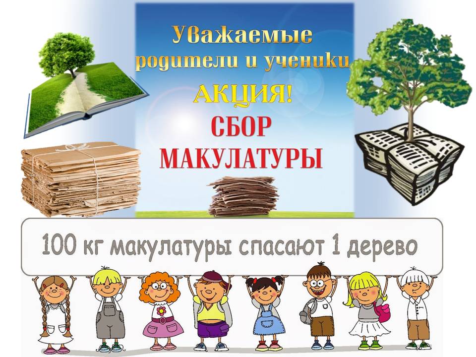 18 марта с 7.30 до 9.00 на территории школы пройдет экологическая акция для обучающихся 5 – 11 классов по сбору макулатуры «Сдай макулатуру - спаси дерево!», целью которой являлось формирование активной позиции детей в области охраны окружающей среды.