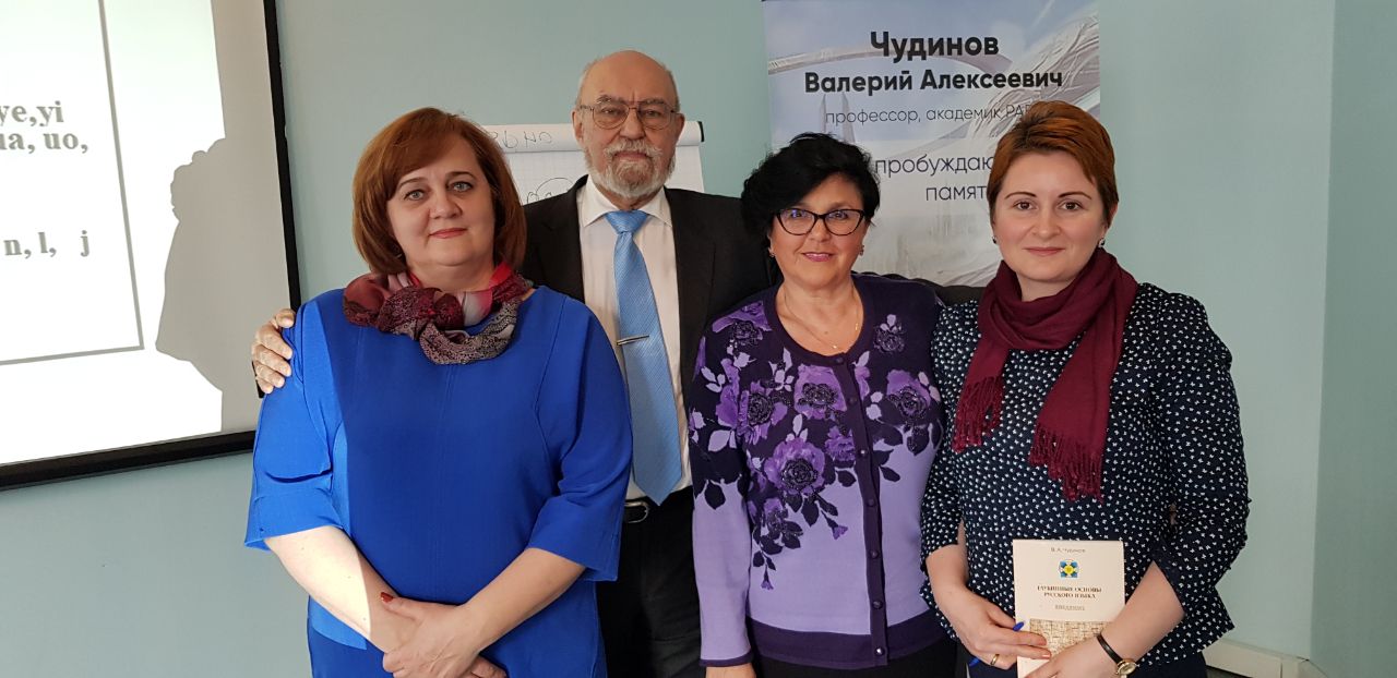 Отрадно, что учителя нашей школы, Баталова Лилия Васильевна, Соловьева Елена Владимировна и Амонишвили Тамара Гивиевна, 16 марта в Санкт-Петербурге приняли участие в работе семинара по теме: "Глубинные основы русского языка" Валерия Алексеевича Чудинова, академика РАЕН, профессора, доктора философских наук, лауреата награды "Золотое перо" и удостоенного титула "Писатель тысячелетия", директора Института древнеславянской цивилизации, председателя Комиссии РАН по культуре древней и средневековой Руси.