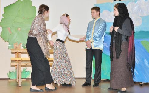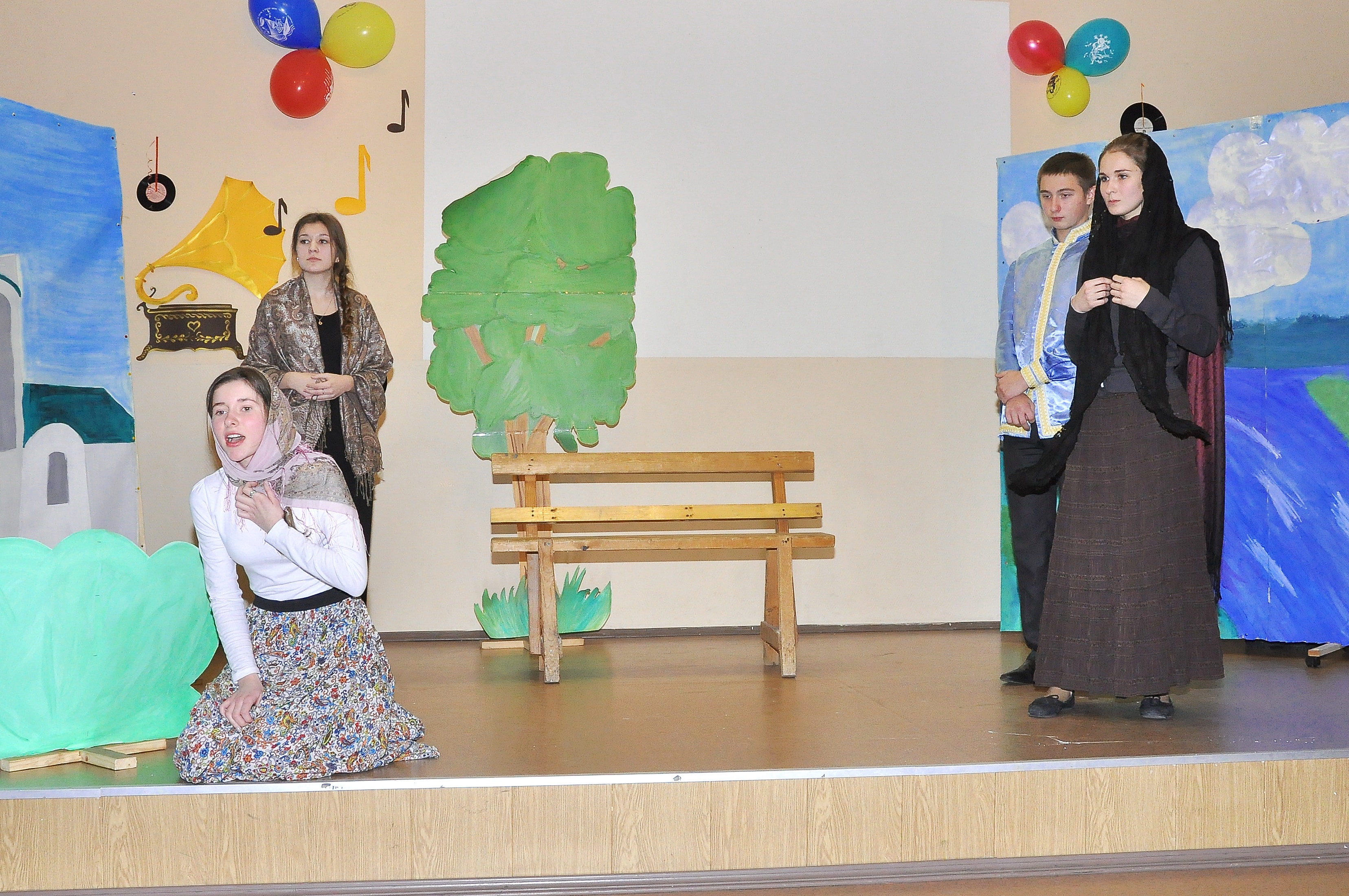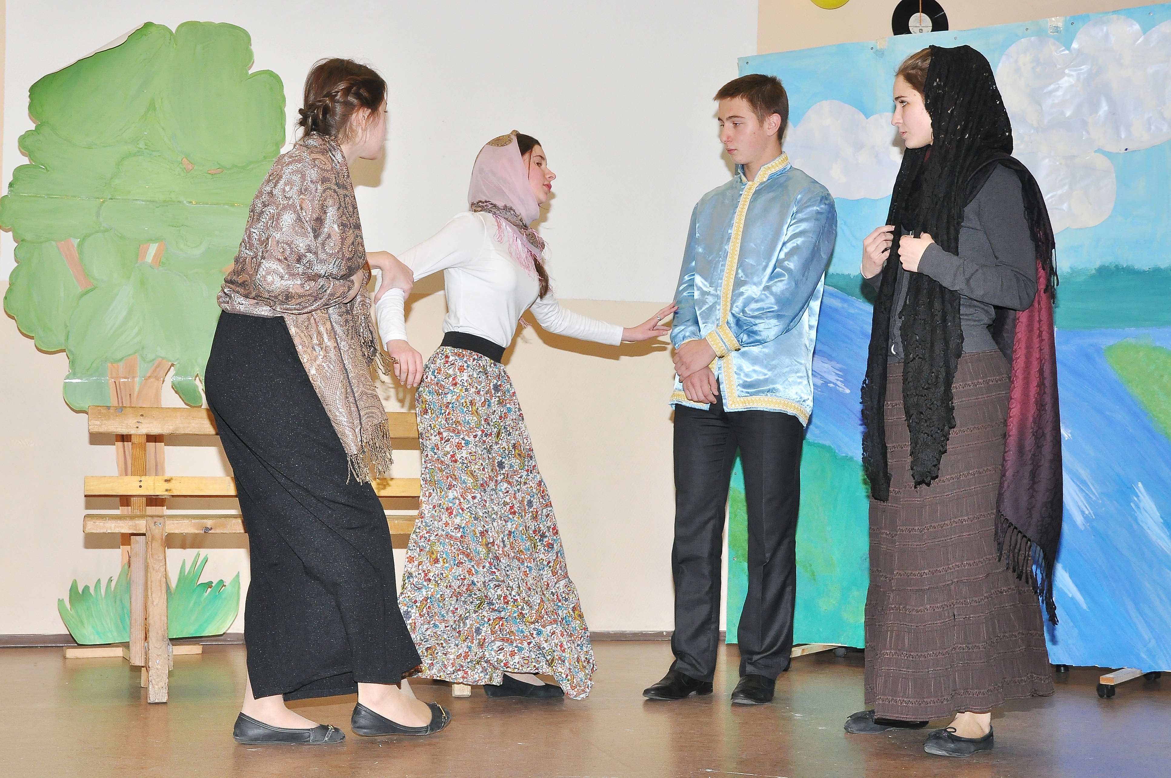 Отличную работу четвертой труппы 10Б класса, показавшую сцену покаяния Катерины, нельзя было недооценить. Они большие молодцы! Все, присутствовавшие в зале, восхищались музыкальным оформлением эпизода, исполненного на рояле «новеньким» Азатом, прибывшим к нам из города Еревана.