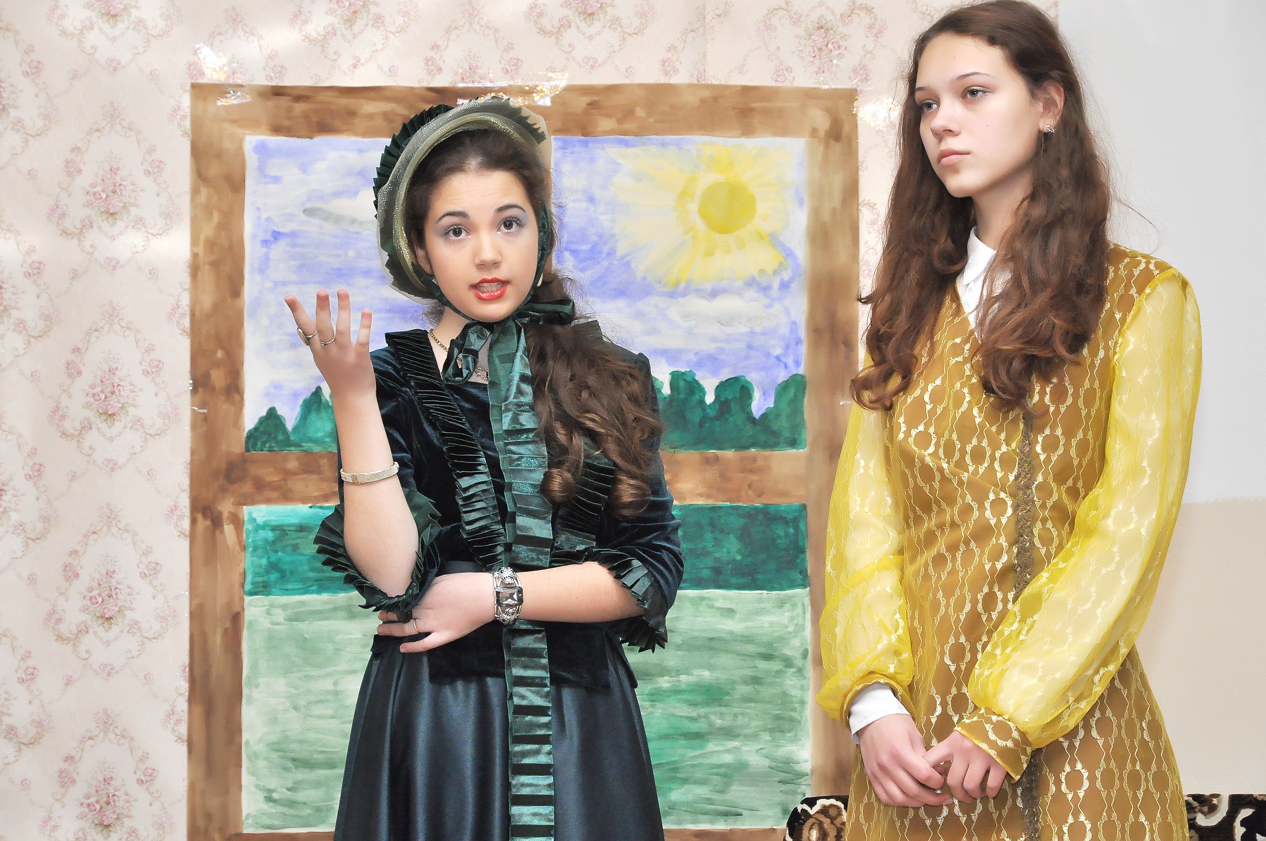 Дима Душин был признан не только лучшим актером, но и лучшим рабочим сцены, ведь он сам в течение 10 дней с дрелью и молотком смастерил две огромные декорации, а Наташа Зонова их великолепно оформила как настоящий художник-оформитель. И это все произошло благодаря Насте Лазо, которая блистала в прежние годы в роли Ларисы Огудаловой (пьеса «Бесприданница»), а теперь учится на профессиональную актрису. Вот она-то и подсказала своей родной сестре Лизе сыграть Юленьку. Гости неоднократно выражали свой восторг по поводу её таланта. Ещё бы, ведь костюм (зеленое бархатное платье и шляпки) для её и её сценической сестры Полины сшила мама, Лазо Елена Викторовна.