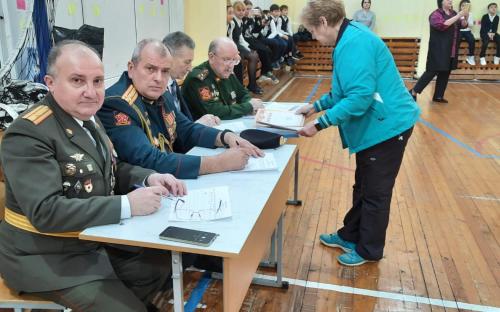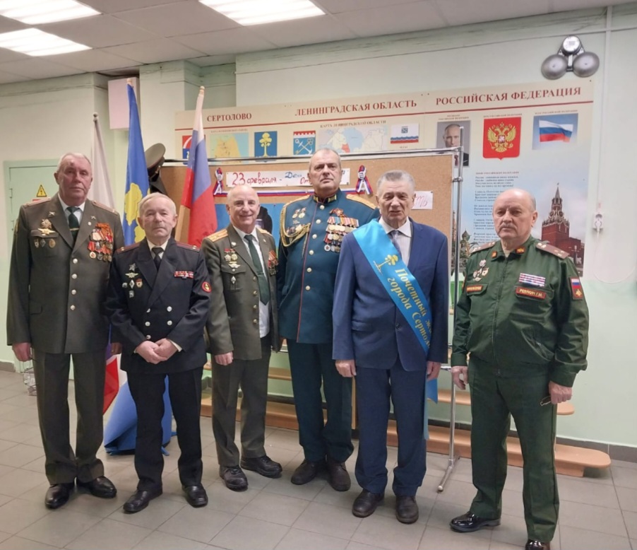 Гости и офицеры, Ревякин Г.М., Пивень С.И., Генералов С.П., Полевой И.С., Котляров В.И., Гавриков Е.А. (представитель сертоловского отделения "Боевого братства"), почетный житель г. Сертолово Веселов В.В., провели Уроки Мужества, на которых поделились своими воспоминаниями о службе.