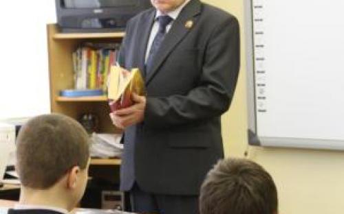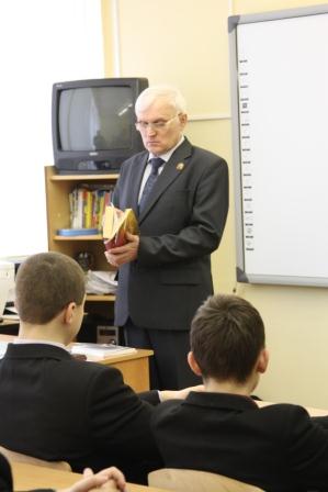 Накануне праздника День защитника Отечества в нашу школу ( по многолетней традиции пришли ветераны вооружённых сил России.  В каждом из девяти классов состоялся интересный, познавательный разговор об истории создания Красной Армии, её славных победах, о воинах-героях. Заворожённо слушали восьмиклассники ветерана войны в Афганистане Статкевича В.А., ученики младших классов получили ответы на все интересовавшие их вопросы о службе и наградах тех, кто выступал перед ними. А организовал эти беседы полковник Пивень С.И.- председатель Совета ветеранов КАУРа. Спасибо всем, кто не забывает о подрастающем поколении!
