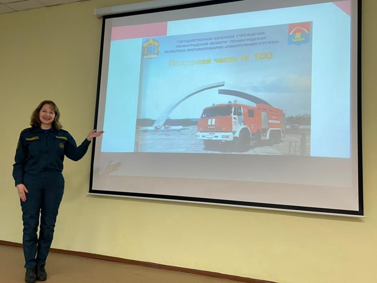 Инструктор противопожарной профилактики Пожарной части №100 Наталья Габрильянц рассказала о важности профилактической работы в наше время и о том, что в неё входит. Была показана ознакомительная презентация о профилактике пожарной безопасности.