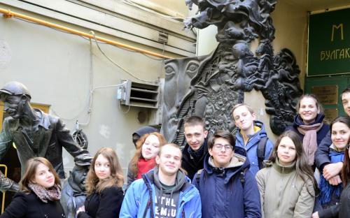 На весенних каникулах, в Международный День Театра, мы, 11 учеников 10а филологического класса вместе со своим классным руководителем Баталовой Лилией Васильевной, на фирменном поезде «2 столицы» отправились на литературную экскурсию по булгаковской Москве.