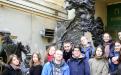 Мы решили пройти пешком от памятника А.С.Пушкину до памятника В.В.Маяковскому по Тверской улице, потому что именно здесь Мастер впервые увидел Маргариту. Затем мимо театра Варьете (теперь здесь Московский театр Сатиры), где Воланд давал сеанс чёрной магии, мы направились в музей-театр, в самое таинственное и неожиданное место, где прежде проживал в «нехорошей» квартире № 50 великий литературный мистификатор Михаил Афанасьевич Булгаков. Там нас встретил наш гид Млодик Роман, с ним мы отправились на экскурсию в знаменитом Трамвае «302-БИС». Это музей на колесах. Да не просто музей, а трамвай-музей, который провез нас по самым интересным местам Москвы эпохи 20-30 годов начала 20 века. Мы проехали мимо дома Грибоедова, особняка Маргариты, Новодевичьего кладбища и Патриарших прудов. По возвращении обратно, к дому №10 по Большой Садовой улице, мы зашли в здание, чтобы заглянуть в самые потаённые уголки музея. Там же нам показали «Почту любви», оригинальный ящик, в который все гости «Булгаковского Дома» бросают записки со своими заветными желаниями. Когда все смогли загадать свои желания, нас проводили на цокольный этаж, где теперь располагается Театр Булгакова и где действо опускается на вас со всех сторон и заставляет прожить таинственную трагикомедию Мастера. Конечно, спектакль нам посмотреть не удалось, но зато наш гид посвятил нам мелодию собственного сочинения и сыграл ее на фортепиано, что произвело на всех слушателей невероятное впечатление. Он условно назвал это произведение соната №5. Роман пожелал всем мальчикам встретить свою Маргариту. Воодушевлённые таким напутствием мы отправились опять пешком на встречу со Старым Арбатом, ведь в одном из переулков Мастер признался своей Музе, что любил её всю жизнь…