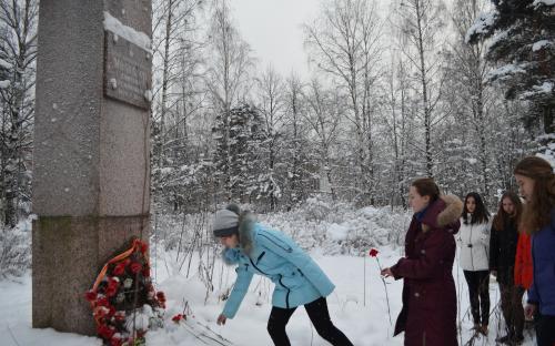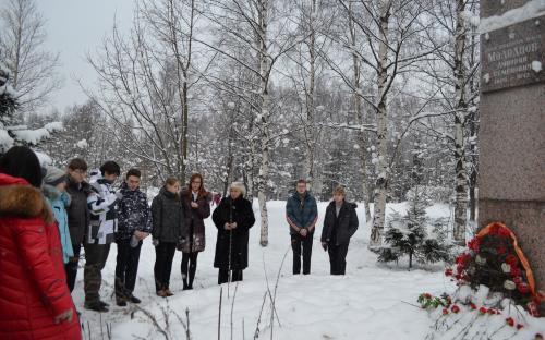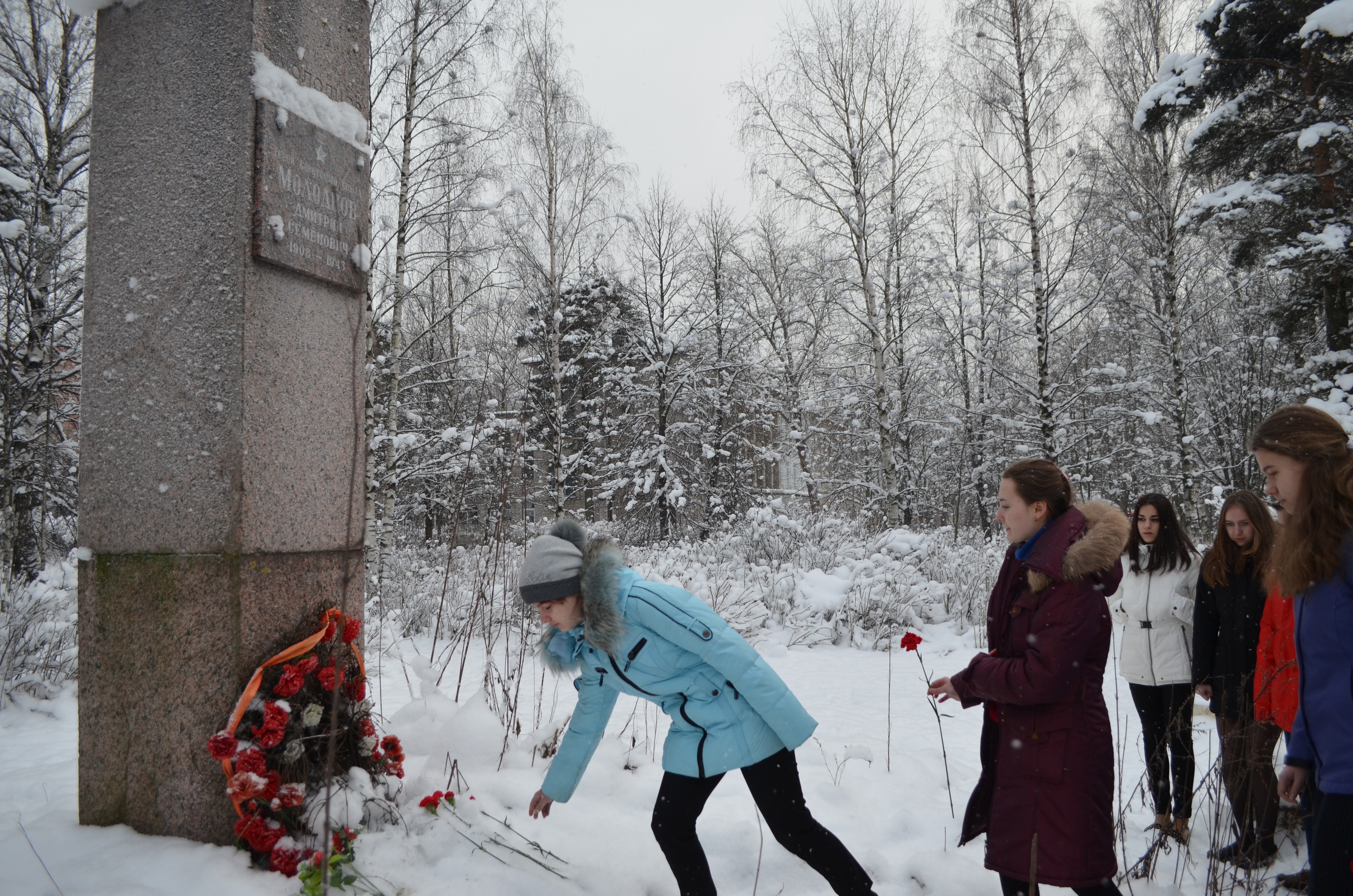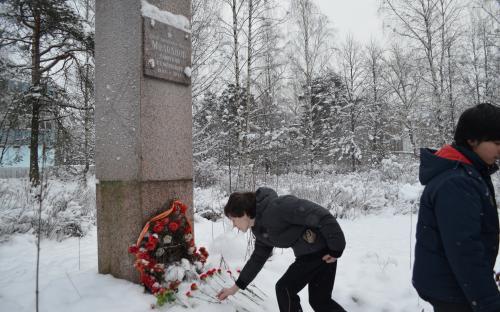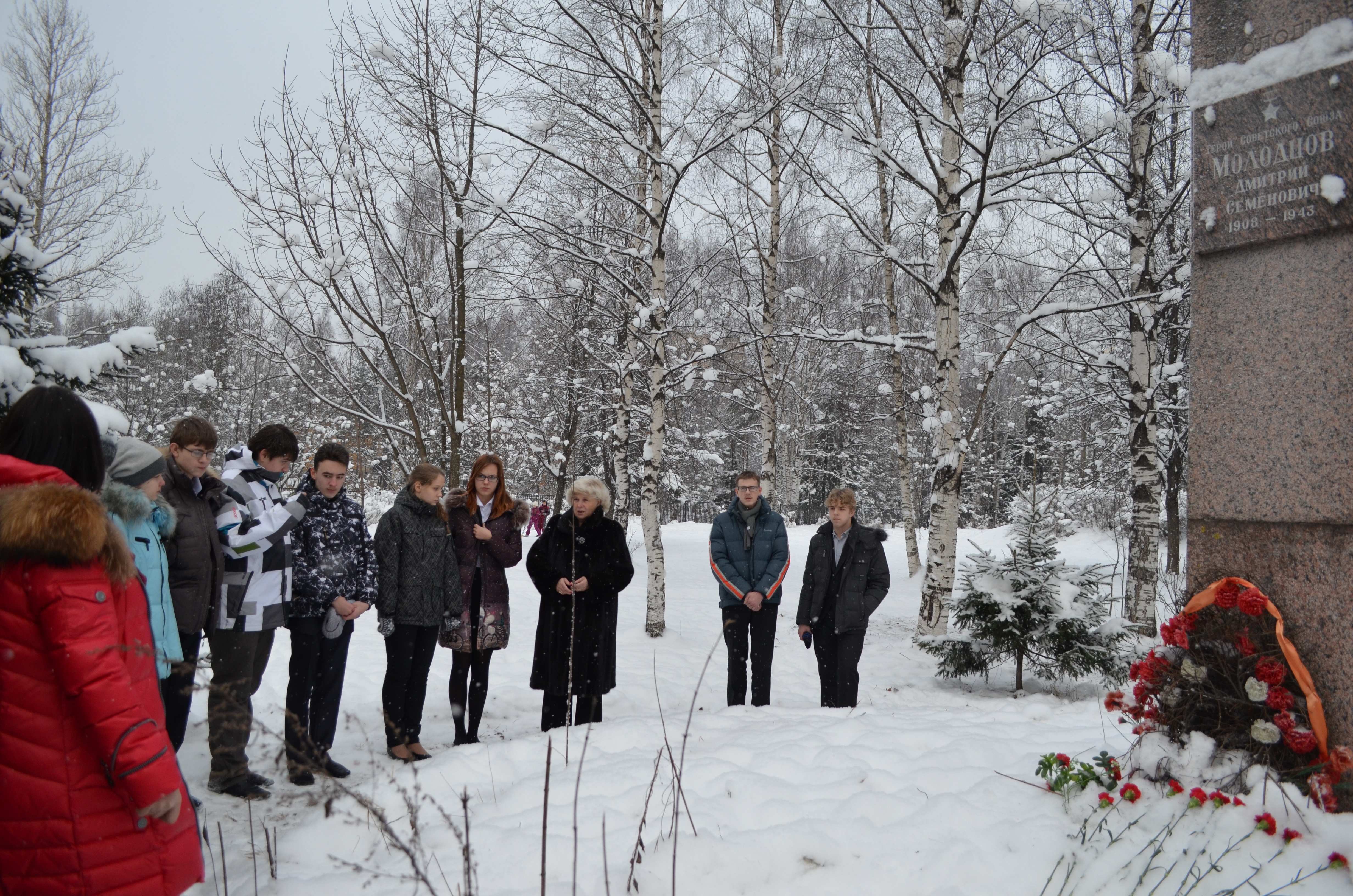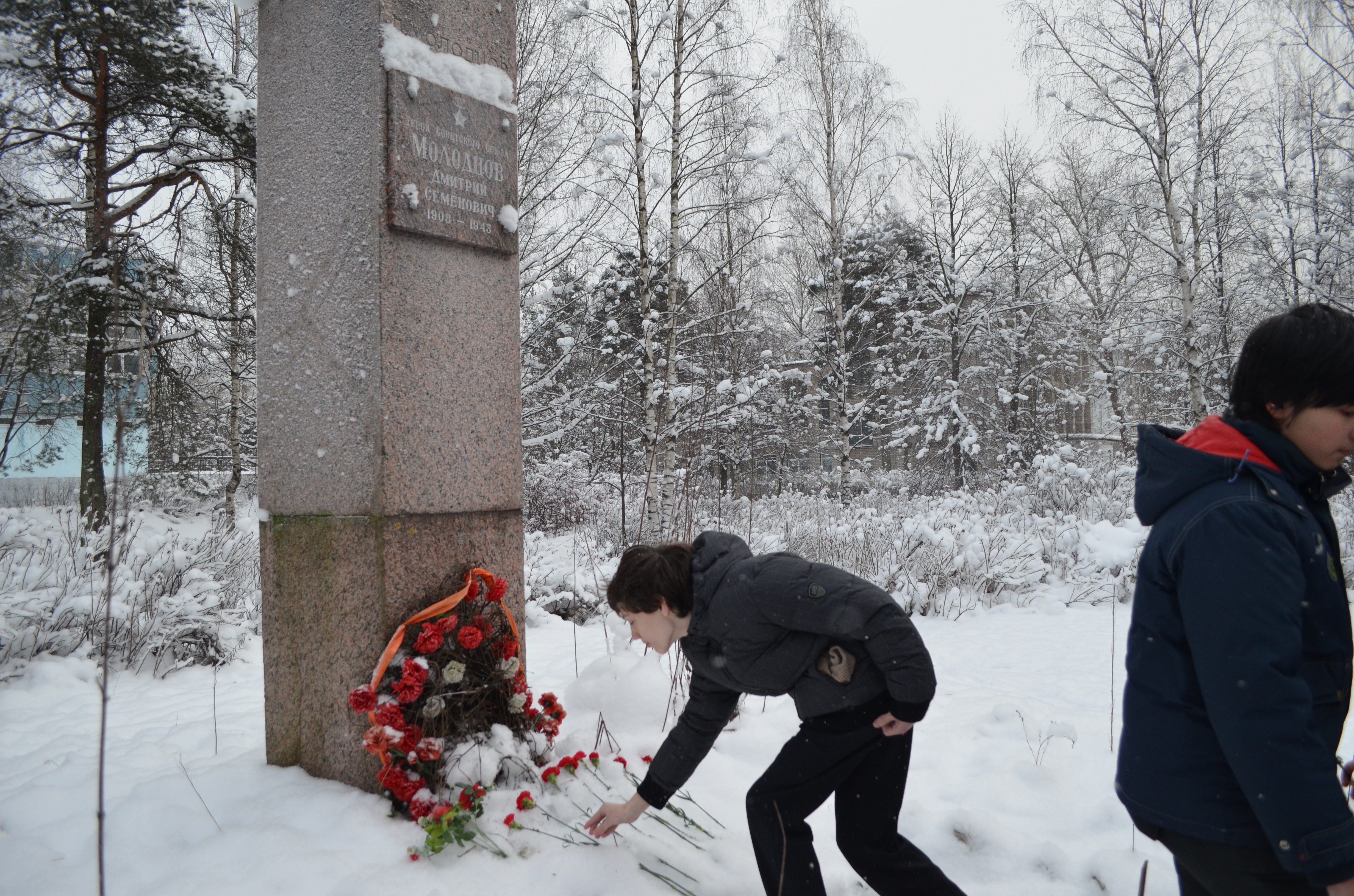 В день воинской славы,  27 января,  учащиеся 9-б класса возложили цветы к памятнику героя г. Сертолово Д.С. Молодцова, который находится на территории МОБУ "Сертоловская СОШ №1". Они почтили память минутой молчания  всех  павших в бою и  уничтоженных в тылу, измученых голодом и холодом людей -   Героев Ленинграда.