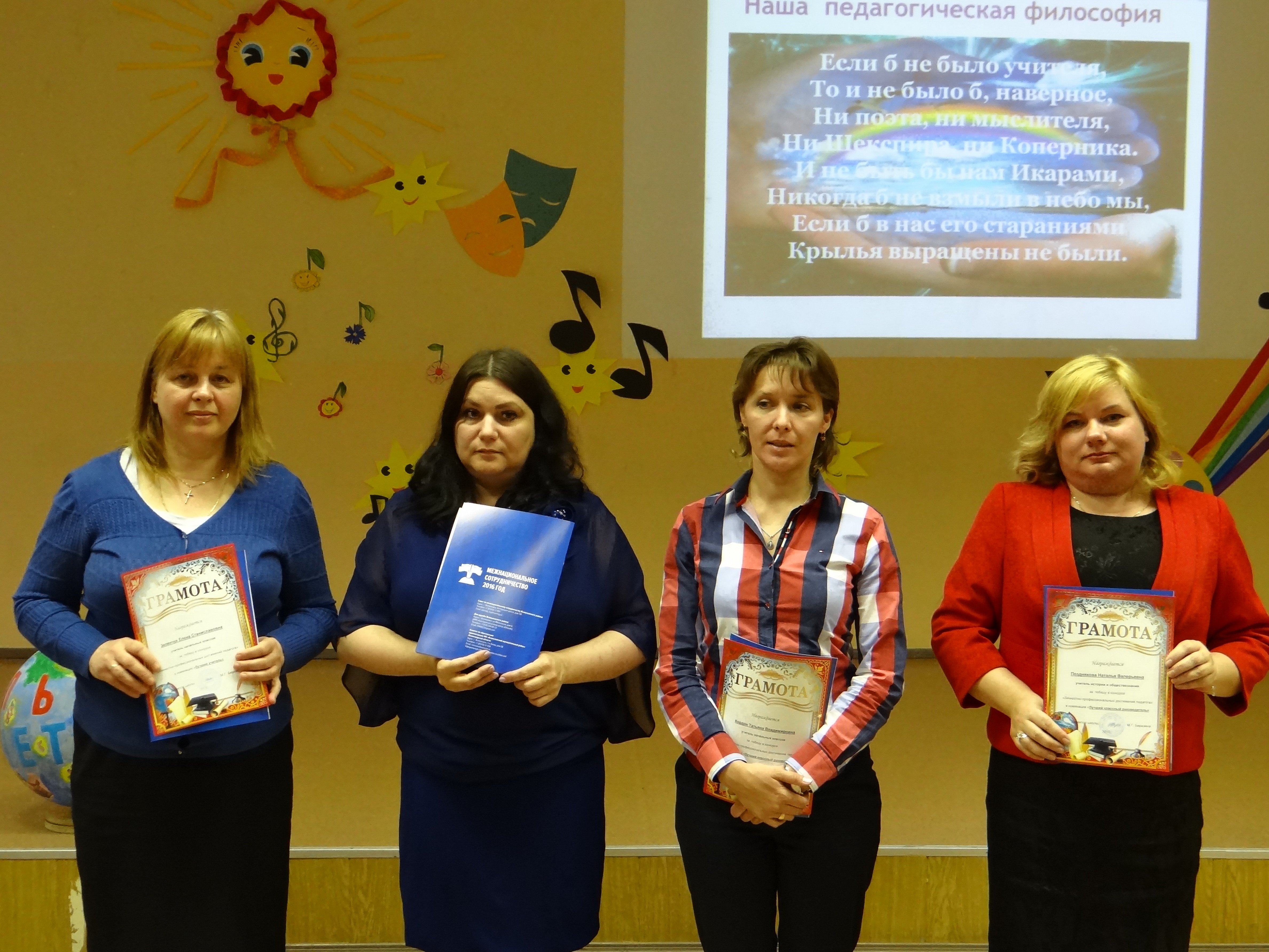 31 мая в актовом зале школы состоялась традиционная школьная ярмарка педагогических достижений. На ярмарке были подведены итоги методической работы педагогов школы. Каждое методическое объединение представило свои методические разработки, итоги участия школьников в предметных олимпиадах,  итоги участия педагогов в конкурсах профессионального мастерства. Педагоги методического объединения учителей иностранного языка "Гид" стали лауреатами муниципального конкурса Лучшее школьное методическое объединение".  По итогам ежегодного конкурса личностно-профессионального развития педагогов грамоты и денежные премии получили: 1 место в номинации "Лучший учитель года" - Зеленчук Елена Станиславовна - учитель начальных классов и Константинова Елена Александровна - учитель химии и биологии. Победителями в номинации "Лучший классный руководитель" стали Кордон Татьяна Владимировна - учитель начальных классов и Позднякова Наталья Валерьевна - учитель обществознания.